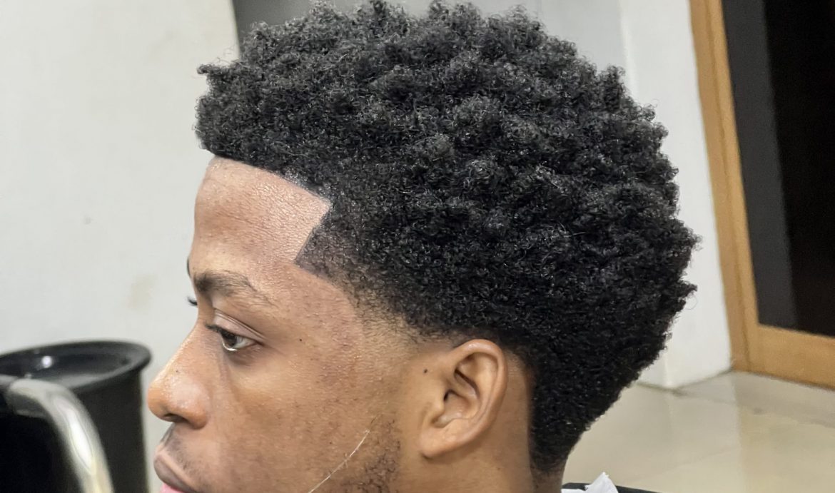 jeune au salon pour faire pousser cheveux afro